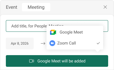 Integrate Zoom, Google Meet, or other video platforms to automatically attach meeting links.